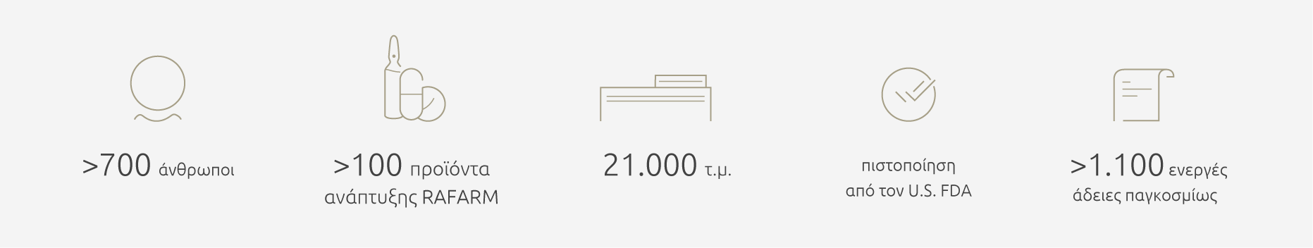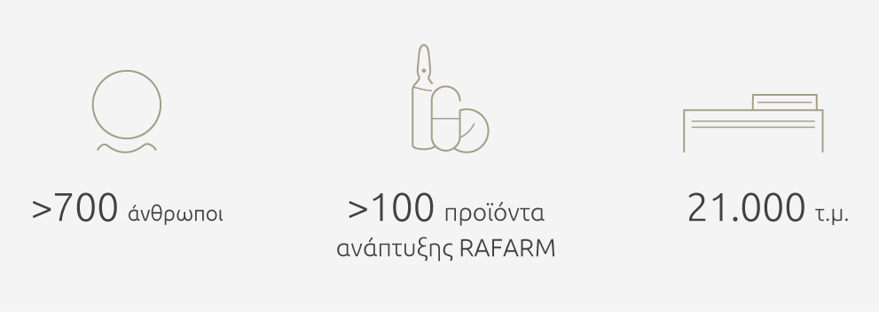 Η RAFARM είναι μία από τις μεγαλύτερες Ελληνικές φαρμακευτικές βιομηχανίες με εξωστρέφεια και προσανατολισμό στην καινοτομία. Η RAFARM επενδύει ετησίως το 10% του καθαρού κύκλου εργασιών της εταιρείας στην Έρευνα και Ανάπτυξη, δημιουργεί νέες θέσεις εργασίας υψηλής εξειδίκευσης και επεκτείνει την εξαγωγική της δραστηριότητα (>30% του ετήσιου κύκλου εργασιών) σε περισσότερες από 60 χώρες.